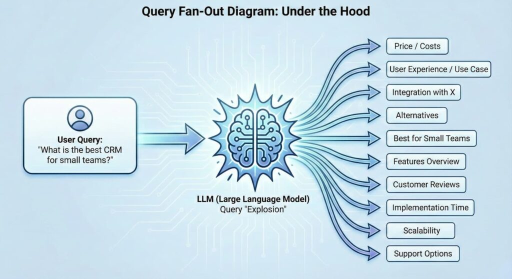 Instead of running one search, the model creates a swarm of intent-specific queries: