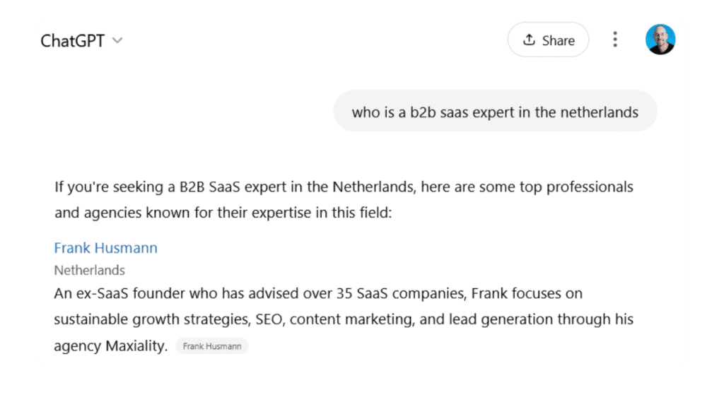 I see the same in my own field: ask an LLM about B2B SaaS marketers, and I often appear in the results. Not because I actively optimize for it, but because my content uses consistent patterns, clear positioning, and repeatable language. And that’s precisely what AI models rely on.