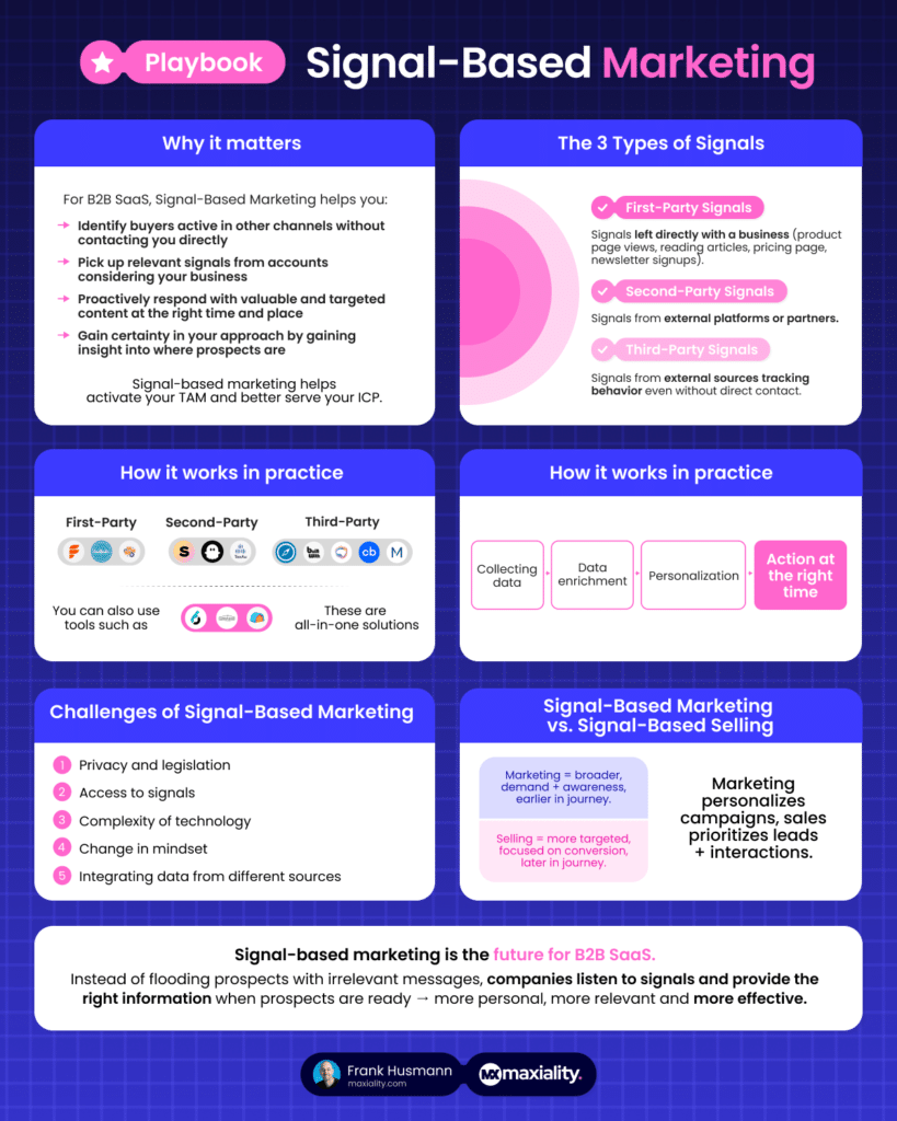 - Change in mindset Signal-based marketing requires a fundamental change in how companies think about marketing. It is no longer about sending, but about listening and anticipating. For many organizations, this is a major shift that requires training, time and dedication.