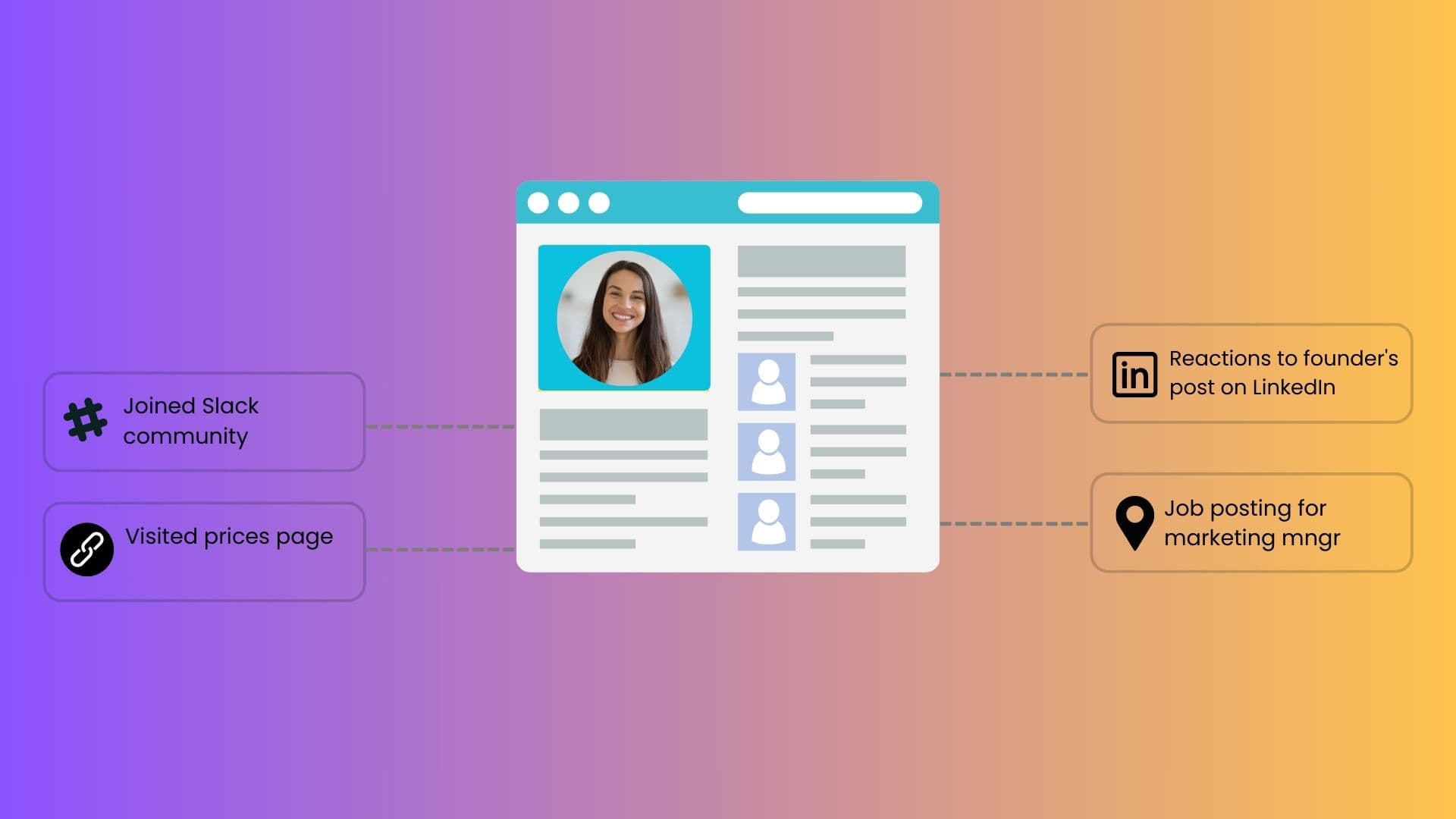 - Pick up relevant signals from accounts considering your business, so you know who is showing interest, even if they are not explicitly asking about your services.